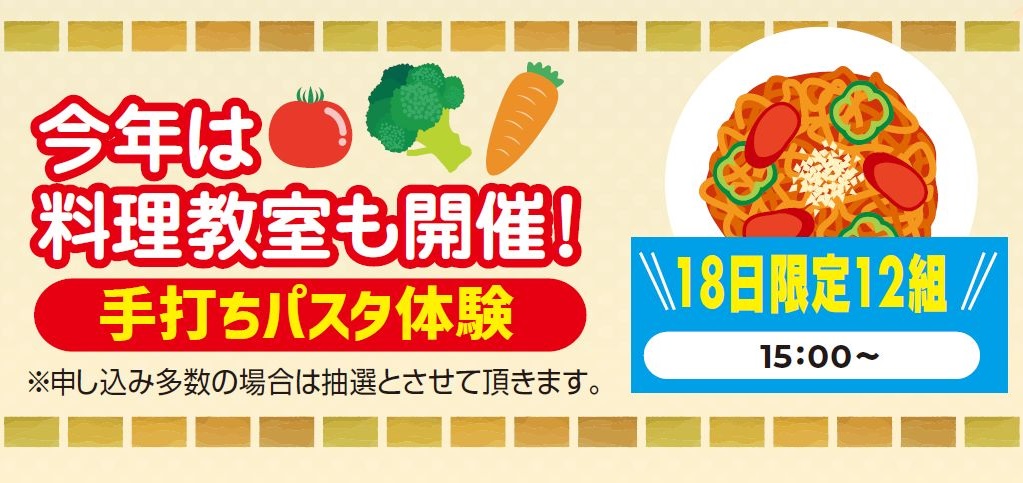 ・持ち物:なし(作ったパスタ、ソースをお持ち帰り希望の方はタッパーなどをご用意ください)